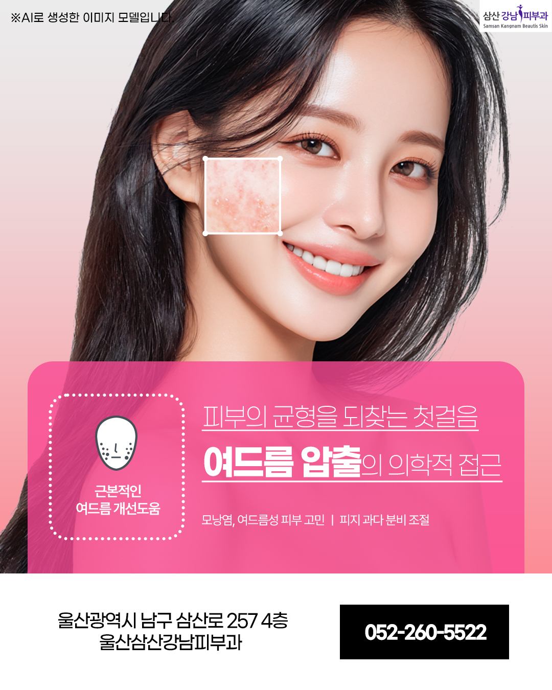 출처 : 울산삼산강남피부과 피부의 균형을 되찾는 첫걸음, 여드름 압출의 의학적 접근피부는 단순한 외형을 넘어, 우리 몸의 건강과 컨디션을 반영하는 ‘거울’과 같습니다. 특히 여드름은...