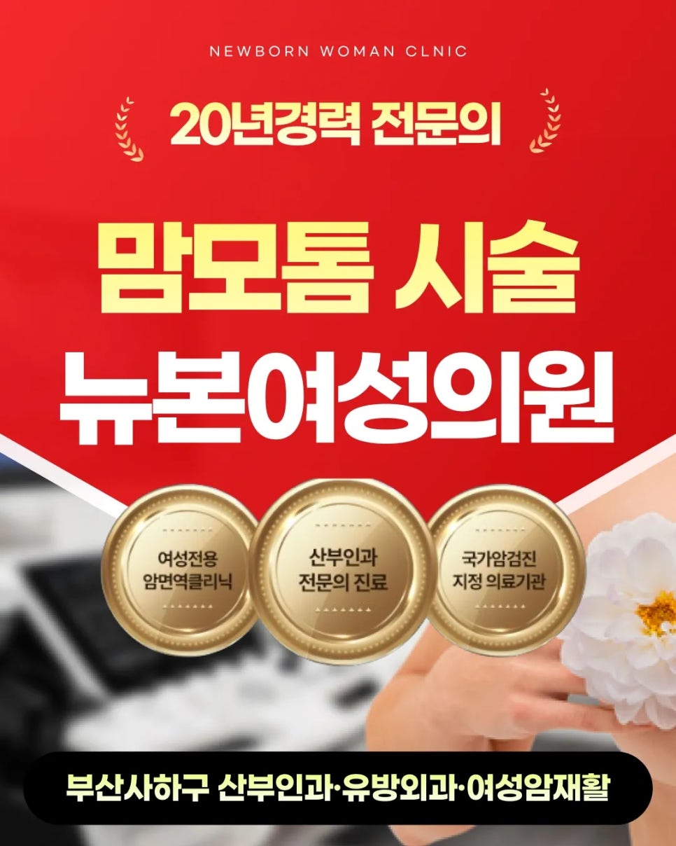 유방에 혹이 만져졌을 때대부분의 유방은 혹은 양성종양이지만,크기가 커지거나 불균형하게 자라면 조직검사나 제거가 필요할 수 있습니다.이 때 정확한 진단과 빠른 치료 연결이 중요한데,다대포유방외과 뉴본여성의원에서는...