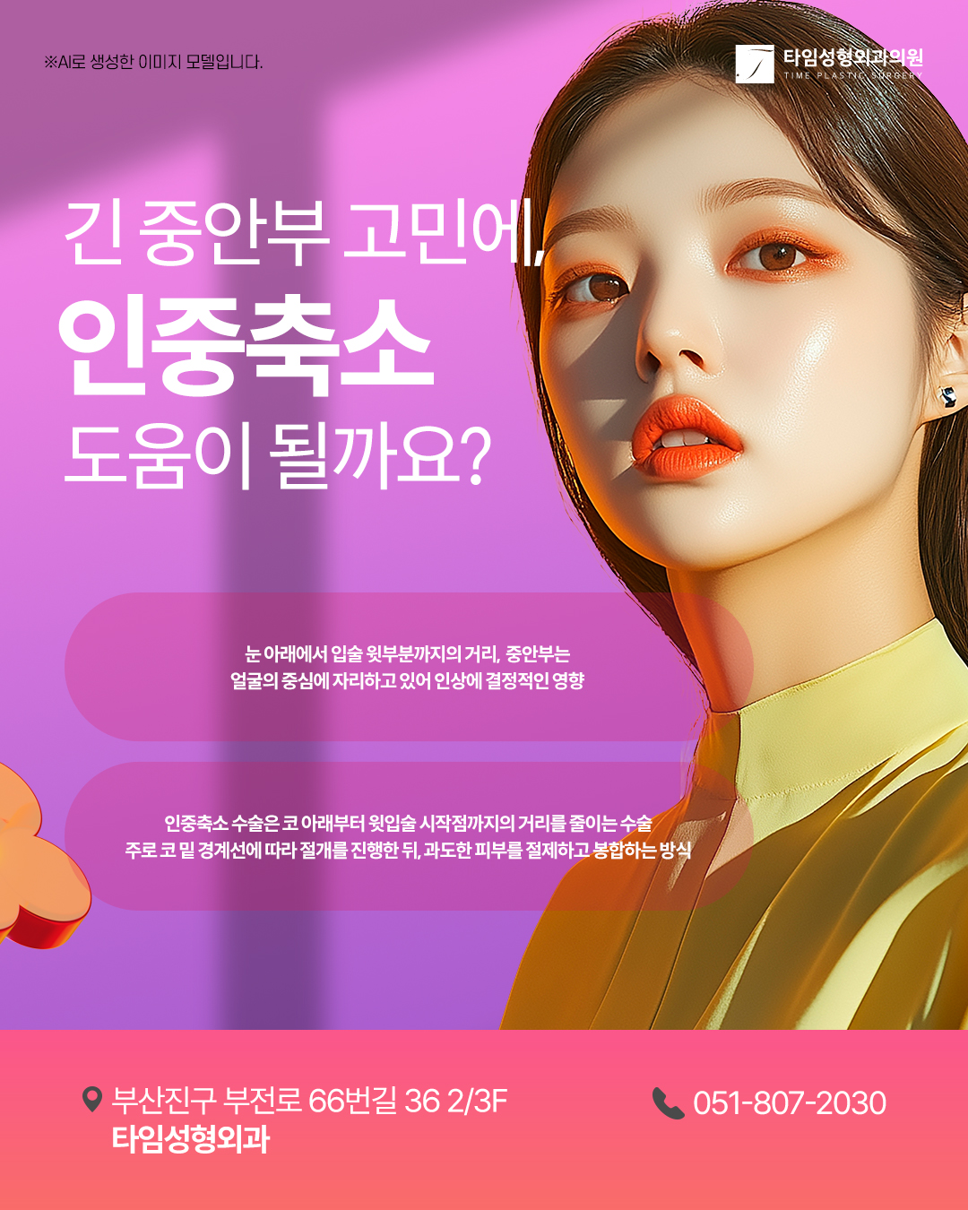 나이가 들면서 피부가 처지면 인중 부위도 함께 길어지거나 모양이 변할 수 있습니다. 인중이 늘어나면 입술과 코 사이의 비율이 달라지면서 얼굴의 균형이 깨지고, 표정이...