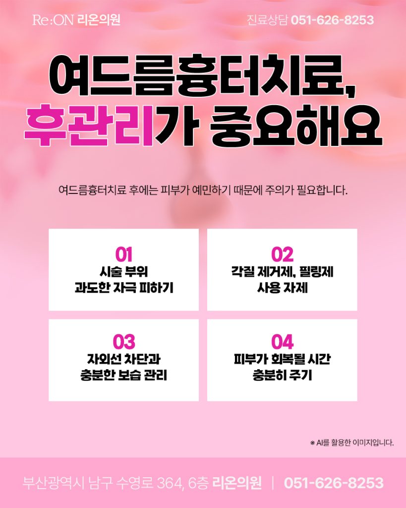 잘못된 사후 관리는 오히려 피부를 더 민감하게 만들고 흉터를 악화시킬 수 있으므로, 반드시 의료진의 안내를 따르는 것이 안전합니다.